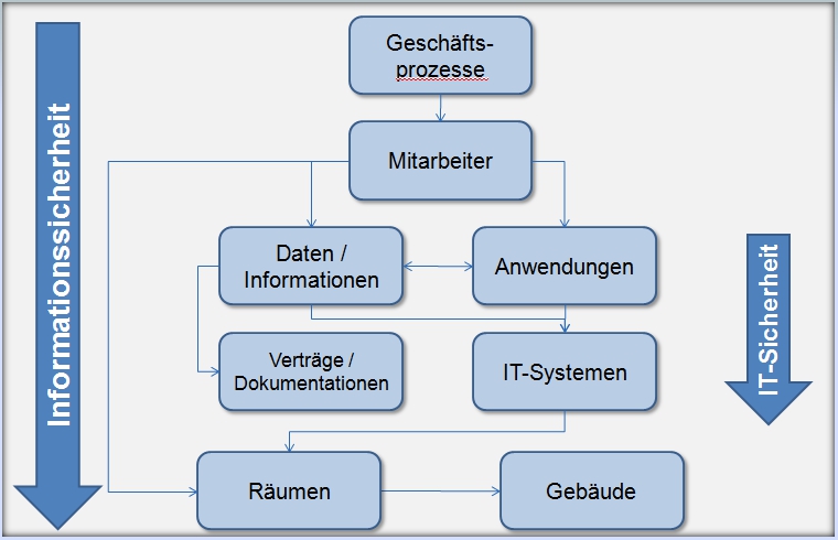 Zur Erreichung eines den Unternehmenszielen entsprechenden Informationssicherheitsniveaus ist mehr als die Anschaffung von technischen Sicherheitsinfrastrukturen oder -produkten wie Antiviren-Software, Firewalls oder Datensicherungssystemen notwendig. Hierzu ist ein ganzheitliches Konzept, welches ein funktionierendes und in die Aufbau- und Ablauforganisation des Unternehmens integriertes Informationssicherheitsmanagementsystems beinhaltet, zu erstellen. Das ISMS ist ein Teil des unternehmensweiten Risikomanagementsystems. Mit diesem soll die Vertraulichkeit, Integrität und Verfügbarkeit von Prozessen, Anwendungen und IT-Systemen und den hierin verarbeiteten Informationen gewährleisten werden. Der Vorstand einer AG hat gemäß § 91 Abs. 2 AktG geeignete Maßnahmen zu treffen und insbesondere ein Überwachungssystem einzurichten, damit Ereignisse frühzeitig erkannt werden, die den Fortbestand der Gesellschaft gefährden. Auch wenn im GmbH-Gesetz keine entsprechende Passage aufgenommen wurde, ist davon auszugehen, dass für mittlere und große GmbHs die Regelungen des Aktiengesetzen ebenfalls gelten. Daneben müssen Kapitalgesellschaften gemäß § 289 Abs. 1 HGB im Lagebericht auf die Risiken der zukünftigen Entwicklung eingehen. In dem sogenannten Risikobericht sind Gefahrenpotentiale ausdrücklich zu benennen, soweit sie spürbar die Vermögens-, Finanz- und Ertragslage nachteilig beeinflussen bzw. den Bestand des Unternehmens beeinträchtigen können. Im finanzwirtschaftlichen Umfeld schreibt die Bundesanstalt für Finanzdienstleistungsaufsicht (BaFin) den Kreditinstituten und Versicherungsunternehmen über die Mindestanforderungen an die Ausgestaltung des Risikomanagements (MaRisk - BA / MaRisk - VA) vor, dass "die IT-Systeme (Hardware- und Software-Komponenten) und die zugehörigen IT-Prozesse die Integrität, die Verfügbarkeit, die Authentizität sowie die Vertraulichkeit der Daten sicherstellen müssen. Für diese Zwecke ist bei der Ausgestaltung der IT-Systeme und der zugehörigen IT-Prozesse grundsätzlich auf gängige Standards abzustellen." Hierbei verweist die BaFin auf die IT-Grundschutzkataloge des Bundesamtes für Sicherheit in der Informationstechnologie (BSI) sowie den ISO/IEC 27002:2013. Umsetzung eines Informationsmanagementsystems Diese Anforderungen können durch die Einführung eines ISMS eingehalten werden. Zur Umsetzung nach ISO/IES 27001:2013 sind folgende Schritte notwendig: